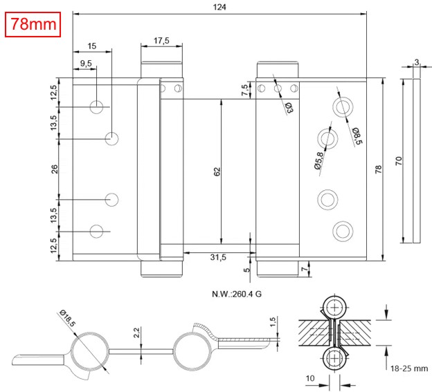 • Rozměr závěsu: 78mm
