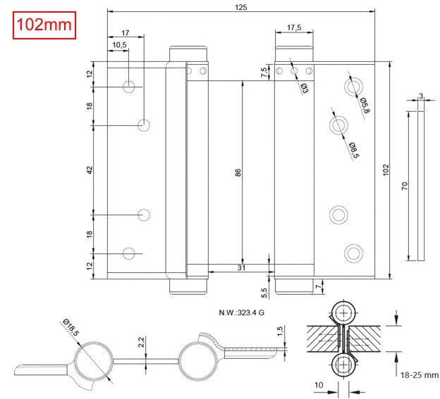 • Rozměr závěsu: 102mm