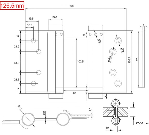 • Rozměr závěsu: 126,5mm